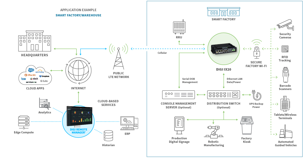 IIoT Product of the Year 2022Digi IX20 is a full-featured cellular router that scales from general connectivity applications to industrial routing and security — easy to deploy and centrally managed via Digi Remote Manager (Digi RM), which is included in your Digi 360 solution.