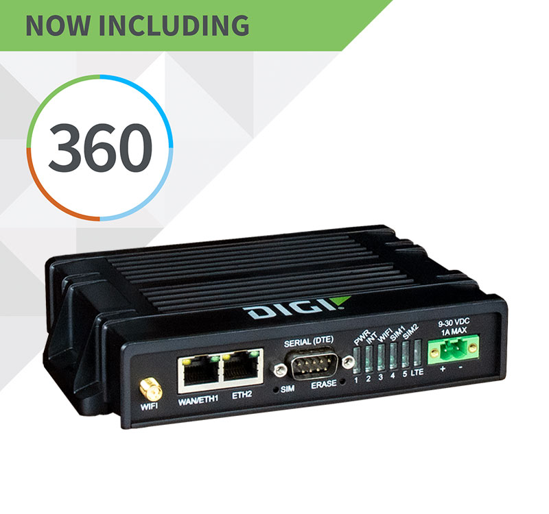 • Includes the Digi 360 solution with warranty, customer care and Digi Remote Manager® cloud management, enabling easy setup, mass configuration and management